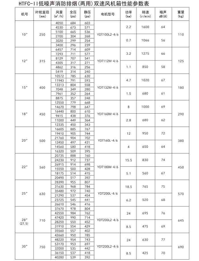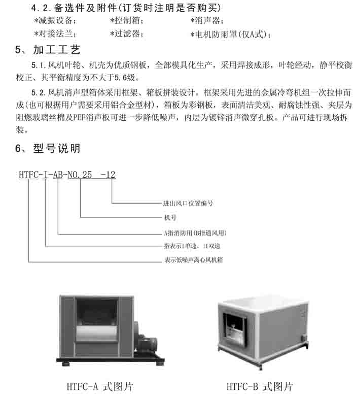一、HTFC(DT)-I、II、V 系列低噪聲消防排煙(兩用)風機箱