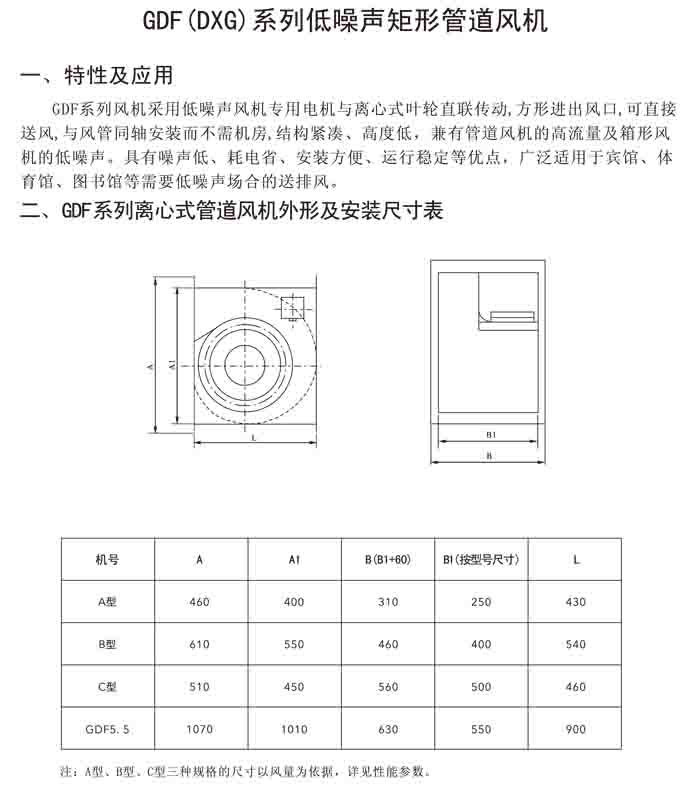 三、GDF 系列低噪聲離心管道風(fēng)機(jī)