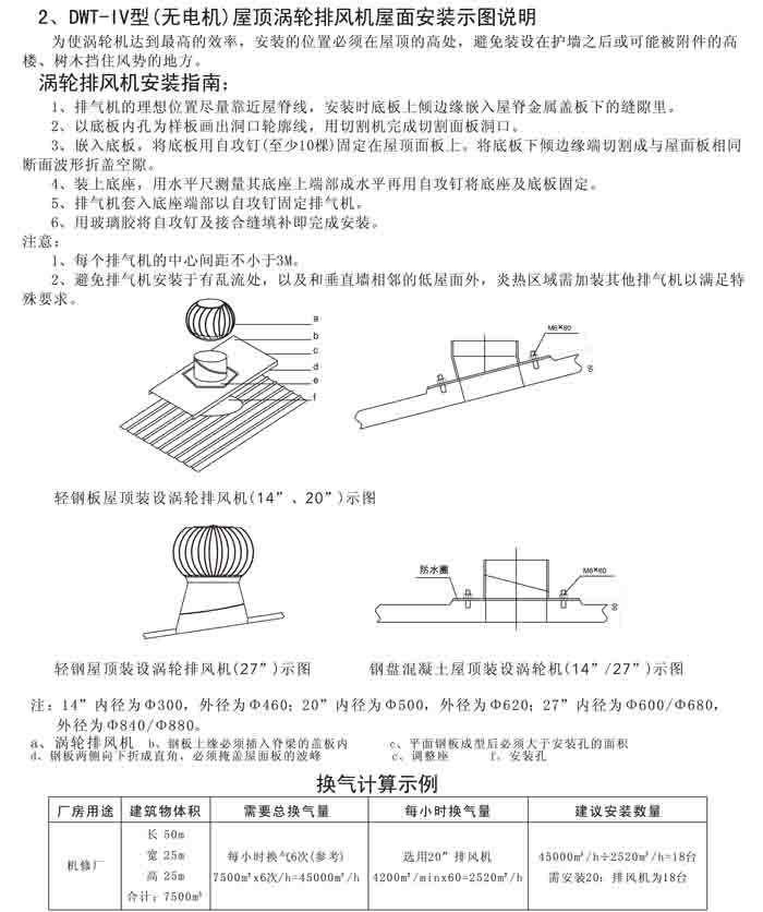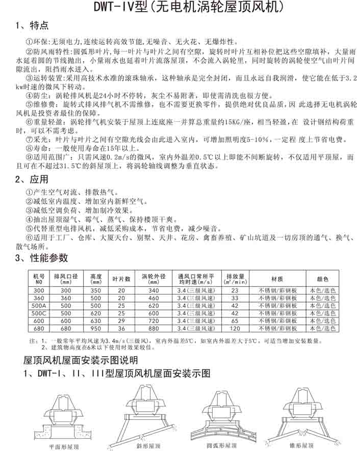 三、DWT-IV 系列無(wú)電機(jī)渦輪屋頂排風(fēng)機(jī)