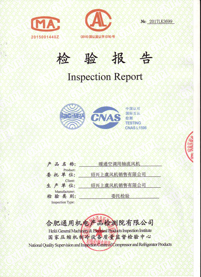 生產(chǎn)許可證檢驗(yàn)報(bào)告低噪聲軸流風(fēng)機(jī) |